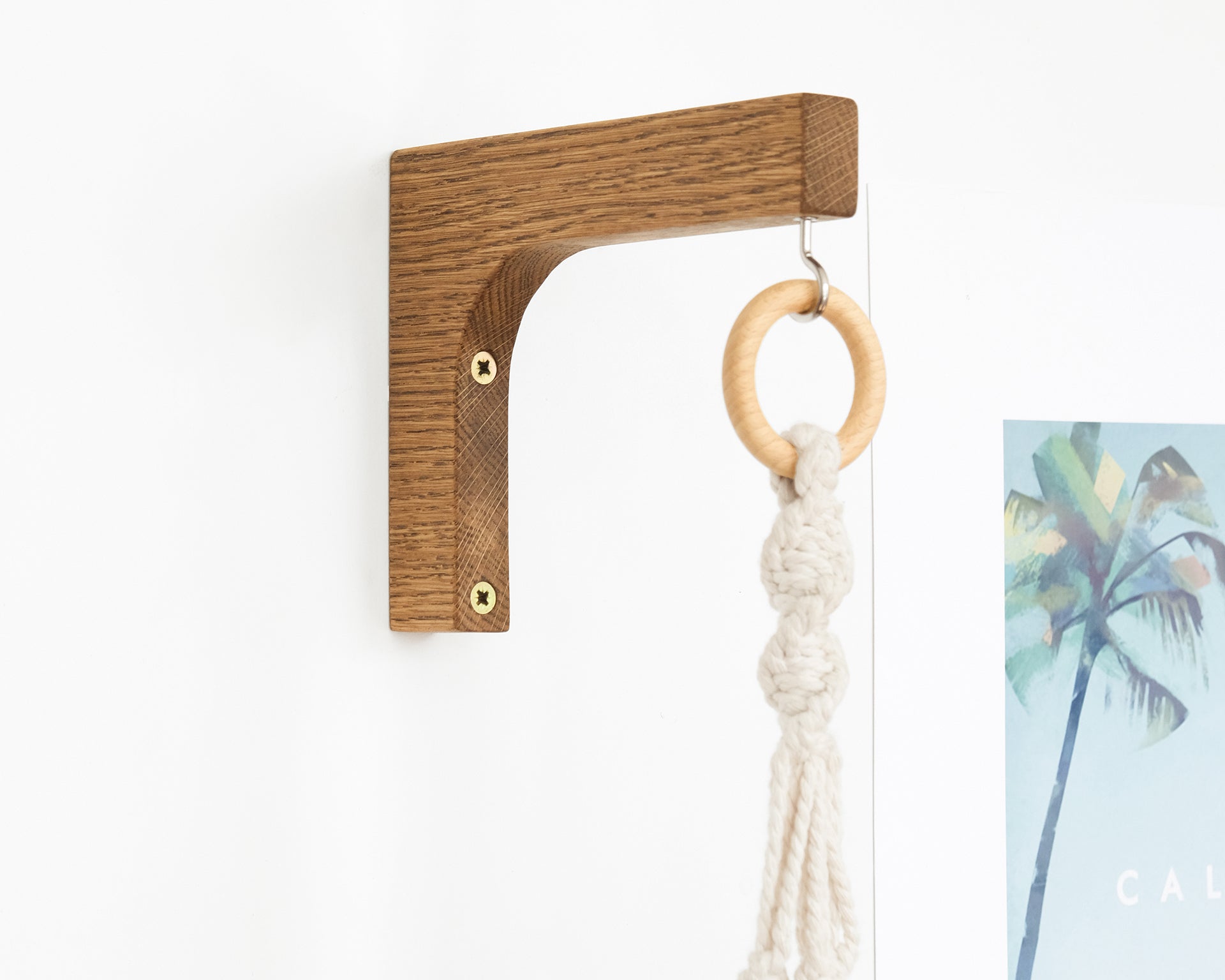 Wooden wall hook for plants and macramé planters or any other holders.The hook is made of natural solid oak.