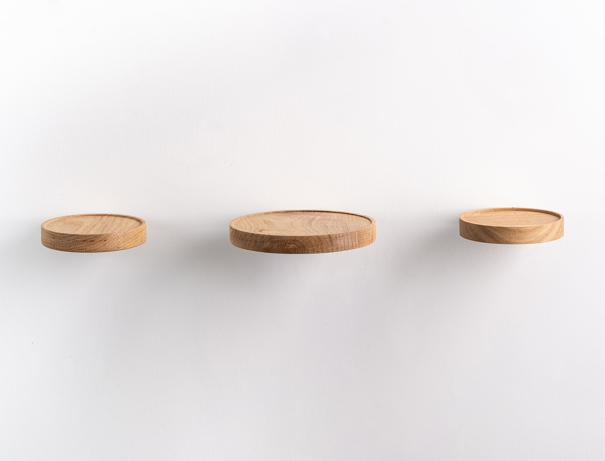 Round floating shelf made of natural wood with hidden fixings.The shelf is perfect for indoor plants, candles, decorations, keys, or other essential items in your home.