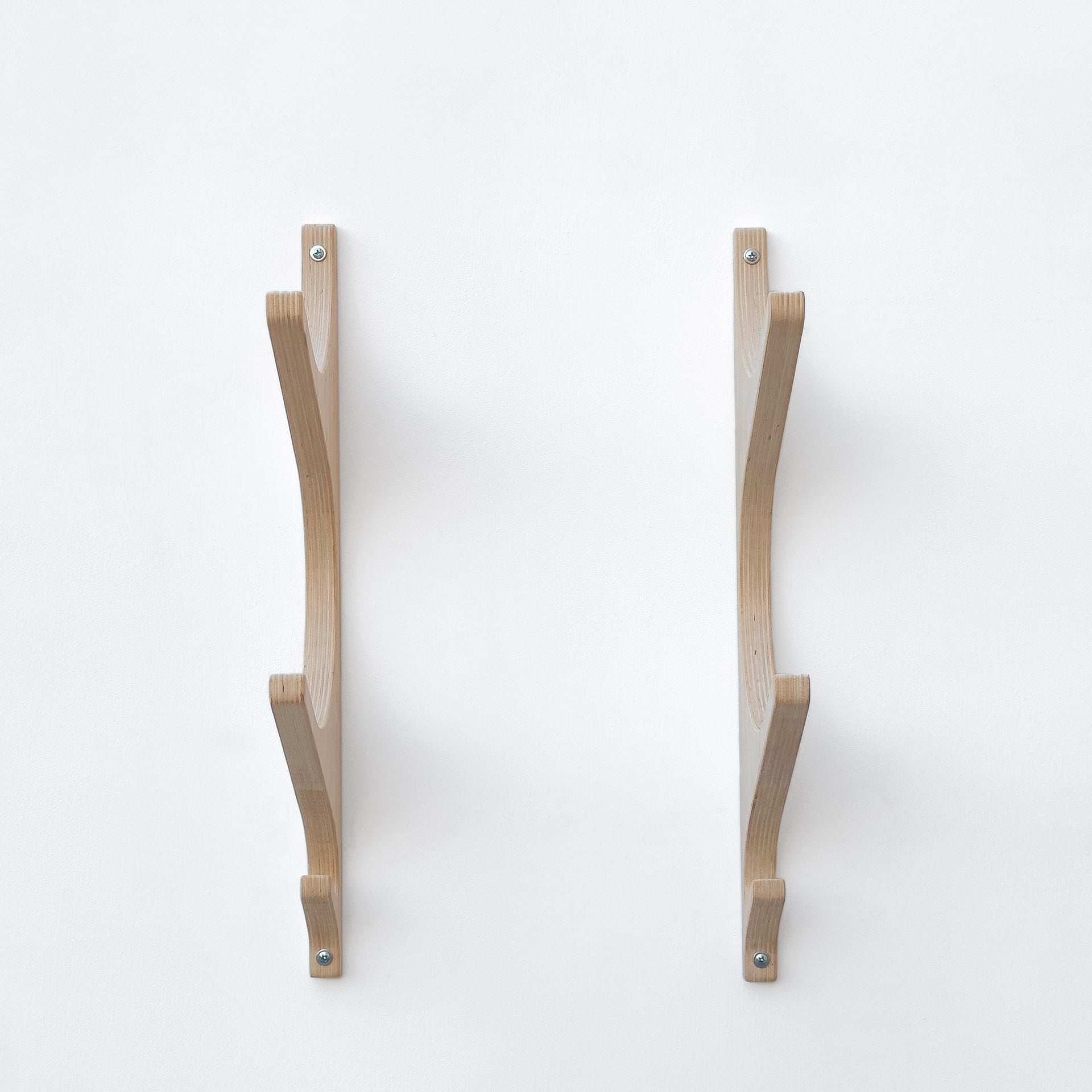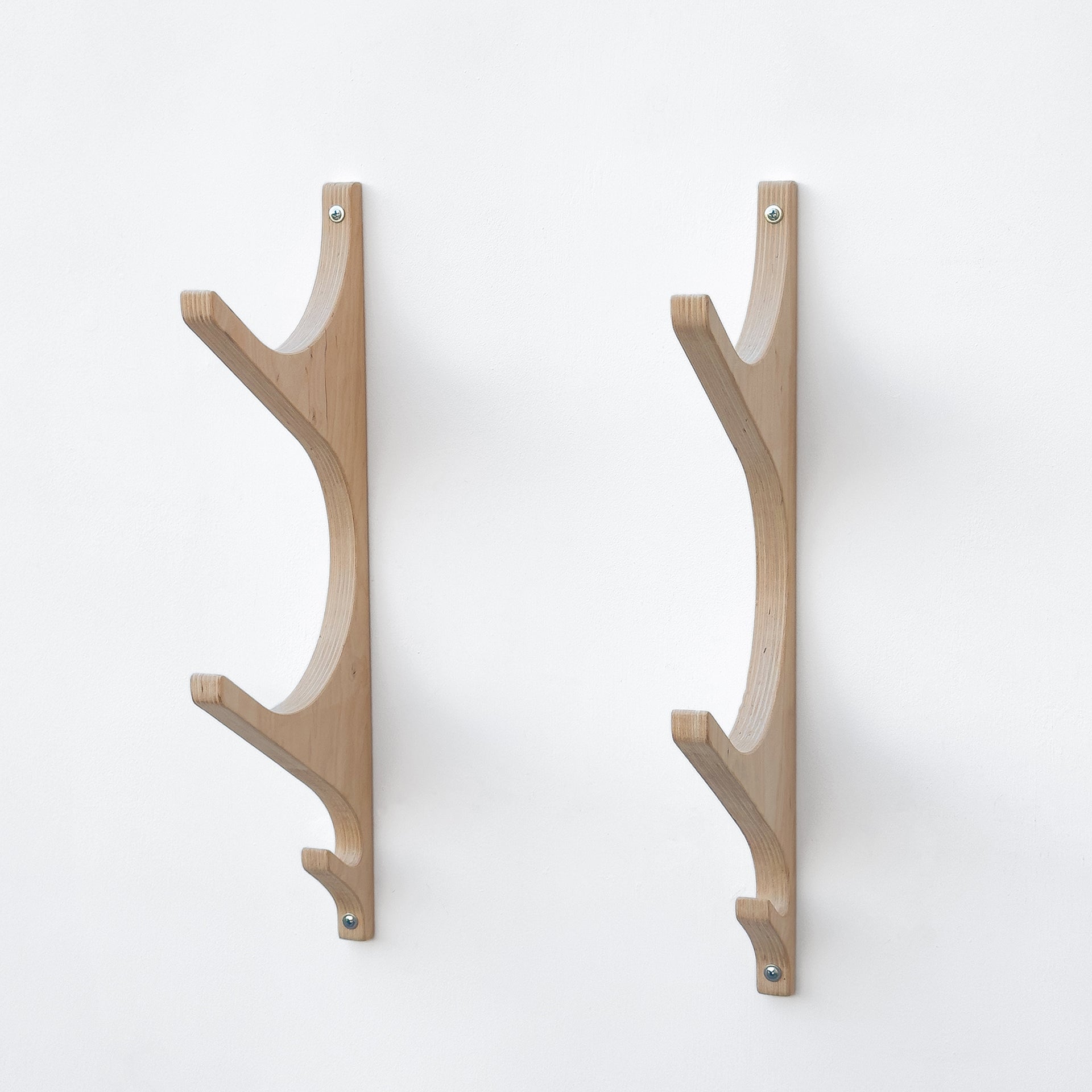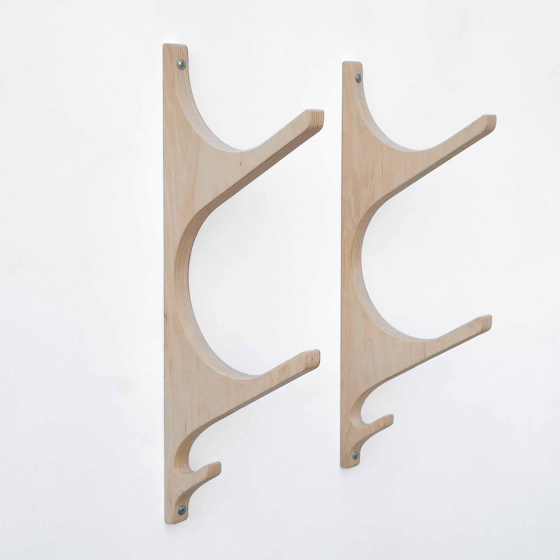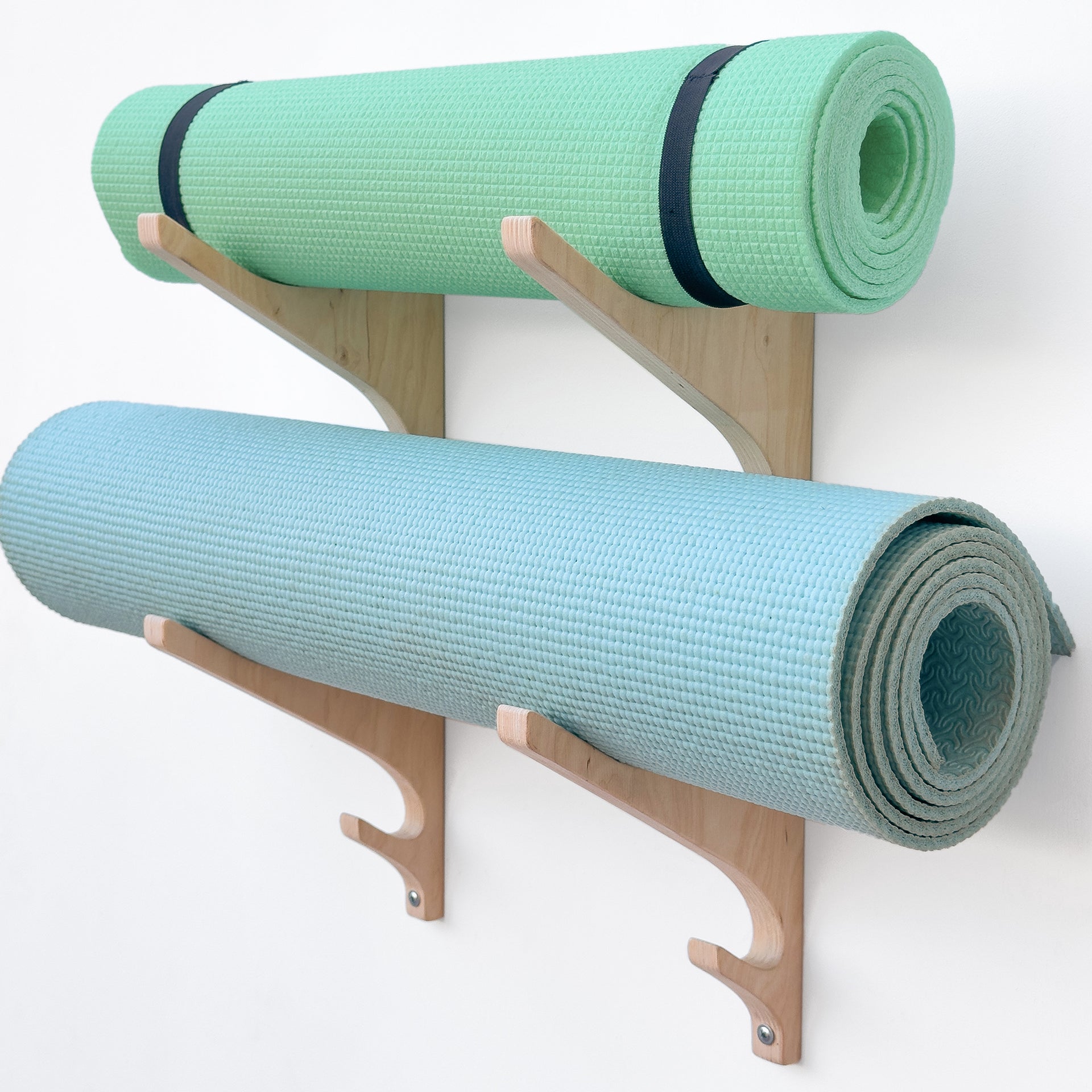 Wooden yoga mat hooks, wall mount wooden yoga mat holder, yoga mat storage, pilates mat rack, hook for sportsbag. Hooks for yoga mats and foam rollers for organizing your home gym or yoga corner.The hooks are made of high quality birch plywood.Sold in a set of 2 lath with hooks. The lath have large hooks (holds for mats or rolls) and 1 small hook at the bottom (for a sports bag, baseball cap, towel).Each hook is handcrafted and sanded to a smooth finish.This yoga rack is designed to hold yoga mats, making it ideal for those who have multiple mats or want to keep their yoga mats organized by type.The yoga mat storage rack is also ideal for storing other yoga accessories.Material: high quality birch plywood, handmadeYou can choose the color of the hooks in the drop-down menu, or leave the hooks uncoated if you want to paint them yourself.Dimensions:Height х depth х inner diameter 1 Tier: 10.4 in х 7.5 in х 6.5 in OR 26.5 cm х 19 cm х 16 cm2 Tier: 18.7 in х 7.5 in х 6.5 in OR 47.5 cm х 19 cm х 16 cm3 Tier: 27 in х 7.5 in х 6.5 in OR 68.5 cm х 19 cm х 16 cm4 Tier: 35.2 in х 7.5 in х 6.5 in OR 89.5 cm х 19 cm х 16 cm5 Tier: 47.3 in х 7.5 in х 6.5 in OR 111 cm х 19 cm х 16 cmMaximum weight up to 7 kg (15 lbs) - 1 Tier.9 kg (19 lbs) - 2 Tier.11 kg (24 lbs) - 3 Tier.13 kg (28 lbs) - 4 Tier.15 kg (33 lbs) - 5 Tier.Contents: 2 lath with hooks made of plywood, template for holes, screws and plastic dowels. -----If you need a custom size, please contact us before ordering or click “request a custom order”.------Please note that each product is unique and the wood grain and color shade may vary slightly. The final size may vary by a few mm from the one shown as it is handmade.--Customs and Import Taxes.Buyers are responsible for any customs and import taxes that may apply. I am not responsible for delays due to customs.