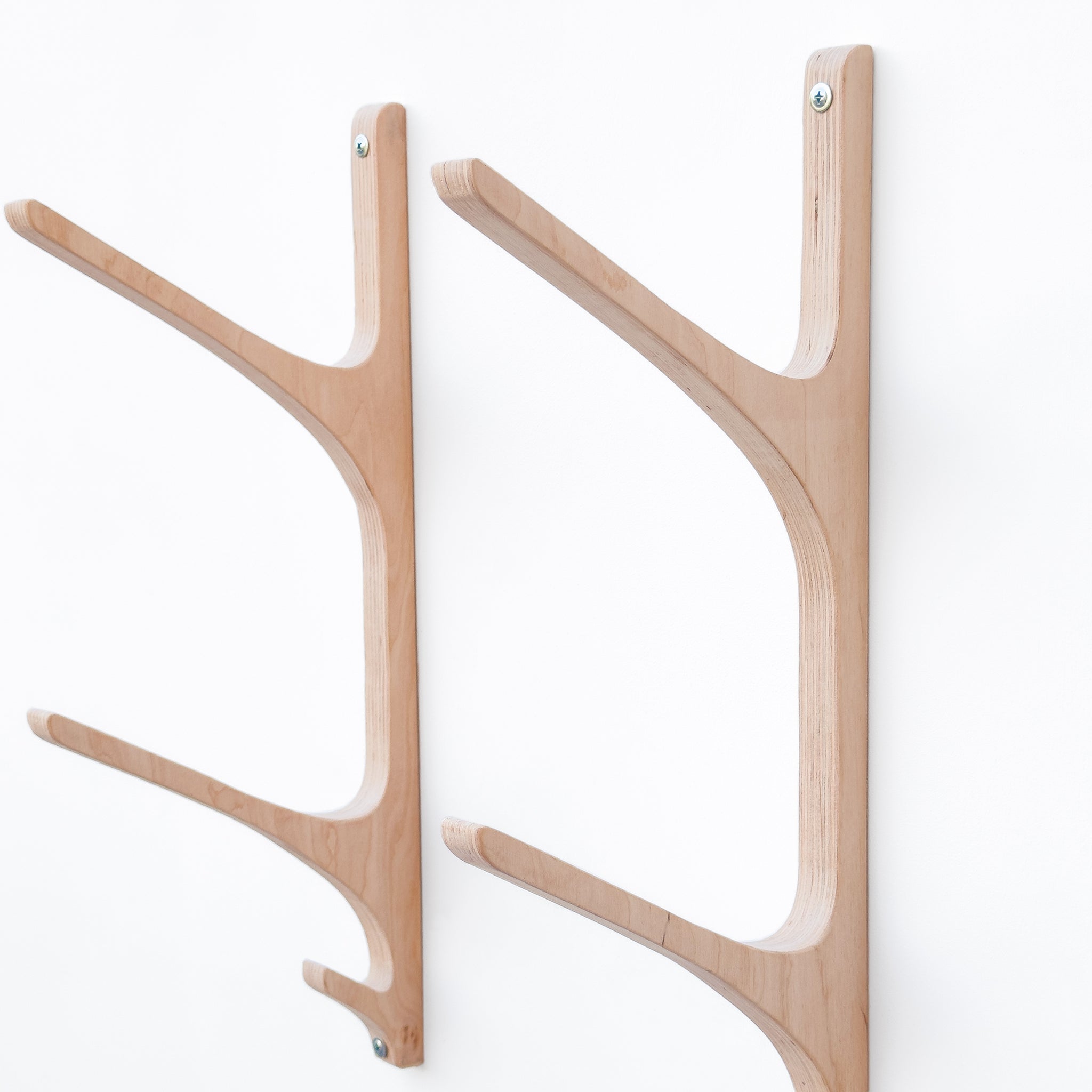 Wooden yoga mat hooks, wall mount wooden yoga mat holder, yoga mat storage, pilates mat rack, hook for sportsbag. Hooks for yoga mats and foam rollers for organizing your home gym or yoga corner.The hooks are made of high quality birch plywood.Sold in a set of 2 lath with hooks. The lath have large hooks (holds for mats or rolls) and 1 small hook at the bottom (for a sports bag, baseball cap, towel).Each hook is handcrafted and sanded to a smooth finish.This yoga rack is designed to hold yoga mats, making it ideal for those who have multiple mats or want to keep their yoga mats organized by type.The yoga mat storage rack is also ideal for storing other yoga accessories.Material: high quality birch plywood, handmadeYou can choose the color of the hooks in the drop-down menu, or leave the hooks uncoated if you want to paint them yourself.Dimensions:Height х depth х inner diameter 1 Tier: 10.4 in х 7.5 in х 6.5 in OR 26.5 cm х 19 cm х 16 cm2 Tier: 18.7 in х 7.5 in х 6.5 in OR 47.5 cm х 19 cm х 16 cm3 Tier: 27 in х 7.5 in х 6.5 in OR 68.5 cm х 19 cm х 16 cm4 Tier: 35.2 in х 7.5 in х 6.5 in OR 89.5 cm х 19 cm х 16 cm5 Tier: 47.3 in х 7.5 in х 6.5 in OR 111 cm х 19 cm х 16 cmMaximum weight up to 7 kg (15 lbs) - 1 Tier.9 kg (19 lbs) - 2 Tier.11 kg (24 lbs) - 3 Tier.13 kg (28 lbs) - 4 Tier.15 kg (33 lbs) - 5 Tier.Contents: 2 lath with hooks made of plywood, template for holes, screws and plastic dowels. -----If you need a custom size, please contact us before ordering or click “request a custom order”.------Please note that each product is unique and the wood grain and color shade may vary slightly. The final size may vary by a few mm from the one shown as it is handmade.--Customs and Import Taxes.Buyers are responsible for any customs and import taxes that may apply. I am not responsible for delays due to customs.
